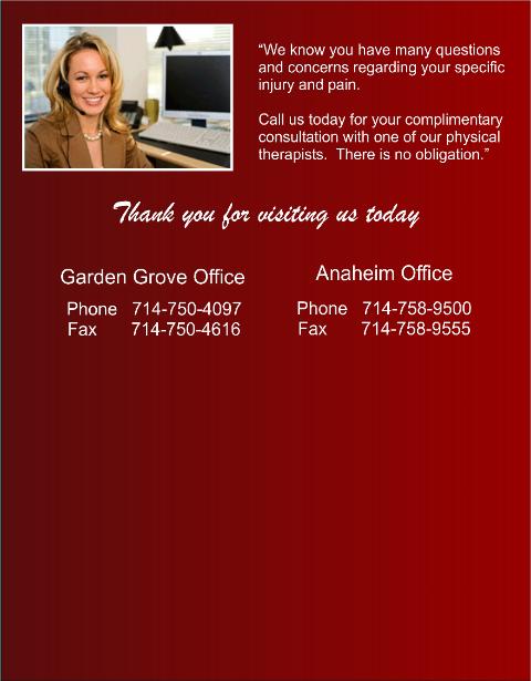 Knight Physical Therapy is conveniently located next to the 5, 22, and 57 freeways.